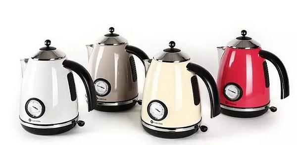 电热水壶这种东西太普及了,技术含量也不高,品牌又这么多,无非就是想法把样子设计了好看一些就可以了。实际上,要找个外观、颜色、以及功能易用的电热水壶还是蛮难的,可选择的还真不多。目前,市面上大多数的热水壶是这样的,如下图。这些是常见的电水壶的款式。