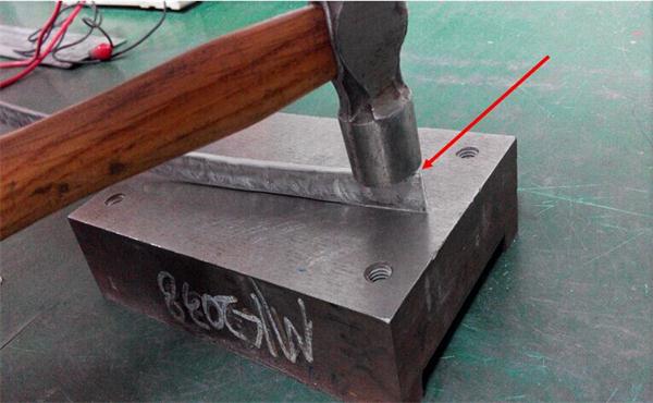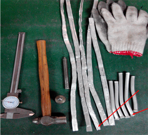 1、美科美发热管厂将管材有焊缝的一面放在测面用铁锤用力敲打至铝材完全平整为止而管身无裂缝。(如下图)