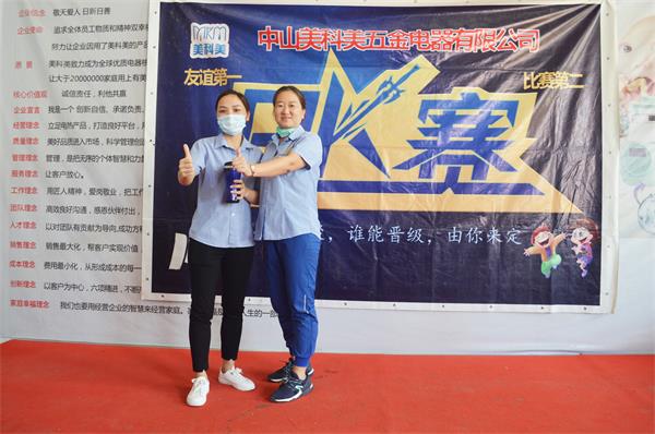 中山市美科美发热管厂的领导给第一名奖励颁发了保温水杯。