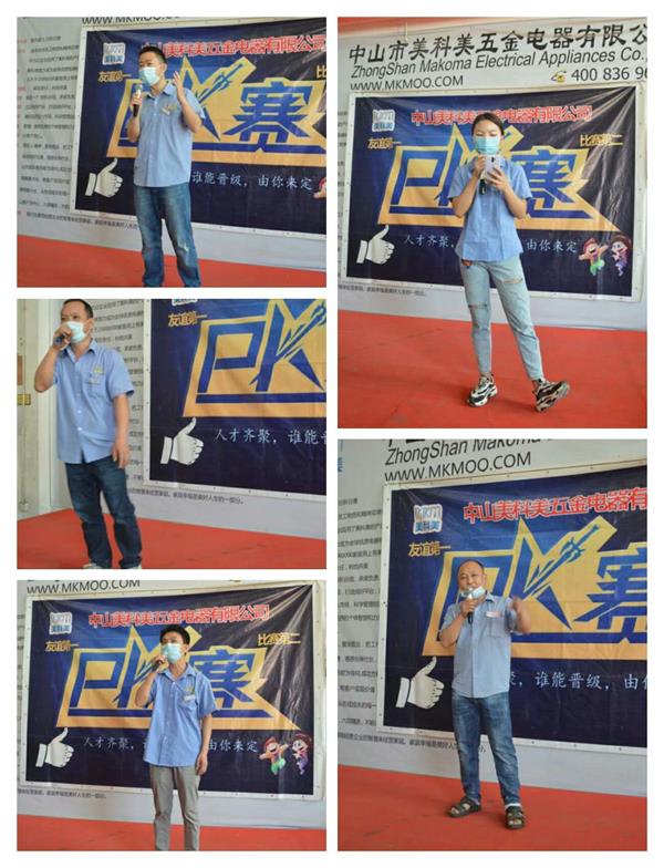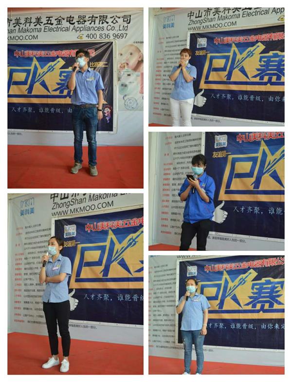 今天中山市美科美电热管厂组织月PK活动,今天各小组1人参与,每人2分钟PK分享设立具体的目标后面再由全员投票评选出前三名,各小组不能为本小组投票。