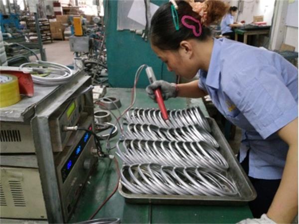 浙江客户订制的豆浆机电热管数量大,所以白班的员工们正抓紧生产和检验中....