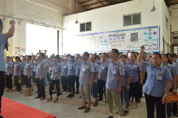 美科美开水煲电加热管厂举行夹书接力活动后,美科美发热管厂人员一起高喊出我们公司的口号:我是一个创新自信、承诺负责、团结感恩 的人。
