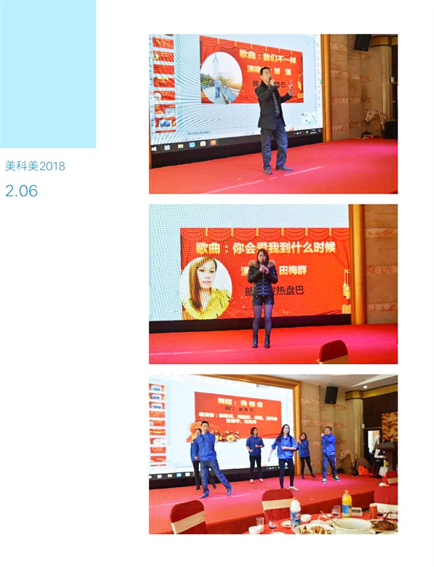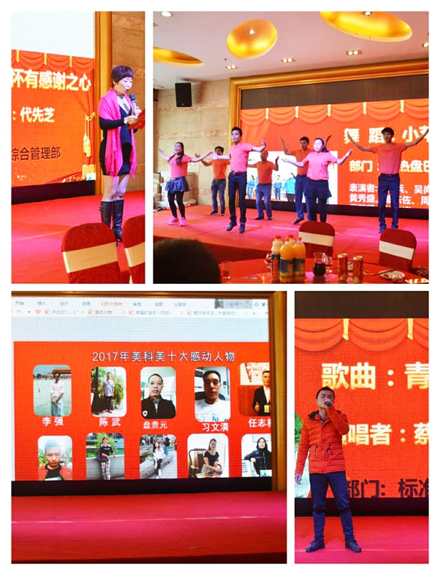 美科美公司的员工们也是才艺多多呀,唱歌也是如此的动人好听,就连我们品管部的徐工工程师也参与了跳舞,向前冲。相信2018年我们也会跟进他们的脚步向前冲的...。