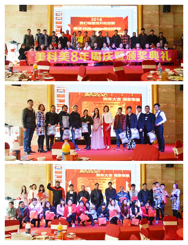 中山市美科美五金电器有限公司在2018年2月6日举行八年庆典暨颁奖晚会,全公司的人员欢聚一堂。我们和大家一起分享丰富多彩的庆典和颁奖节目。