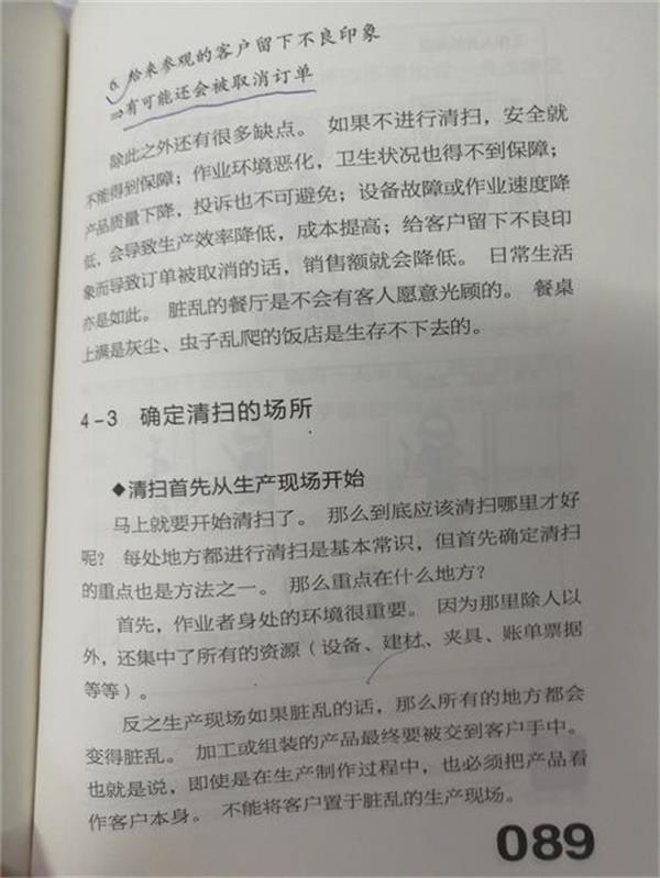 5s为什么要经常进行,这也是需要每个人慢慢养成一种习惯,习惯了就不觉得累,也不觉得烦,所以第一个我们要每天坚持10分钟的打扫,①工作区域环境整洁,物品摆放整齐,物料也不要你的太多。②穿着工作服要保持整洁,更不能穿拖鞋及裙子,短裤进入作业场所。③生产现场用的工具物品或者推车,如果有损坏我们要及时维修,以免有所隐患。我们的清洁用具也放在规定处,消防通道就可以放任何物件,以免堵塞。④我们不能随地扔垃圾及随处摆放杂物,不过这一点我们的员工已经慢慢有所习惯,把烟头扔到吸烟区把垃圾丢住规定的垃圾桶。⑤能确定位置的物品放到暂放区或者要标示出来,例如我们的废旧手套,雨衣放到规定位置等等只有循环渐进,坚持做好我们每一天的习惯,我们的5s就一定能让我们越来越满意,分享完毕。