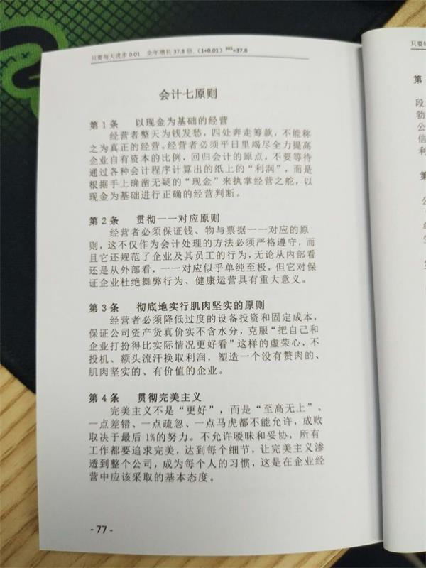 世上没有天生的完美,完美是靠一天一点一滴积累形成的。需要我们在日常工作中将意识高度集中。也就是书提到的,有意注意,需要我们抓住一切机会磨练。企业的经营者要想在工作上达到完美的要求,不但要在宏观上充分明白整个公司的状况的格局,要在微观上了解部下所做的工作,所以要频繁出入现场,感受现场的气氛,了解现场的情况。真正实现完美主义当然很困难,但具备追求完美主义的态度,就能减少错误。同时要严格核查,以求完美。只有经营者自己有这样的完美意识,才能影响到身边所有的人。分享完!