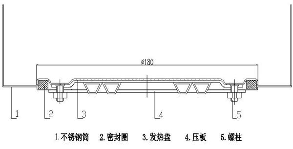 3.发热盘与煮面桶用6个M5螺钉连接,安装时用力不宜太大,以20kgf扭力为宜,防止拉裂钢盘。