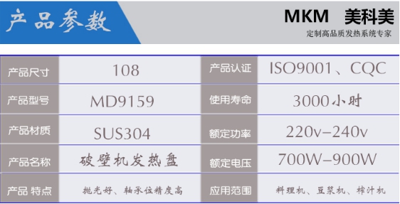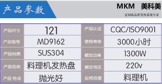 美科美发热盘厂专业生产破壁机发热盘,选破壁机核心配件就选美科美发热盘厂。美科美除破壁机发热盘还有生产各种更多的小家电核心配件发热管,发热盘,如广泛应用在电水壶,豆浆机,电炖盅,电蒸锅,奶瓶消毒器,蒸汽消毒器等家电产品,想了解更多的朋友们请关注我们的网站http://www.mkmqq.com/,会有更多惊喜等着你哦.......也可以通过以下方式联系我们: